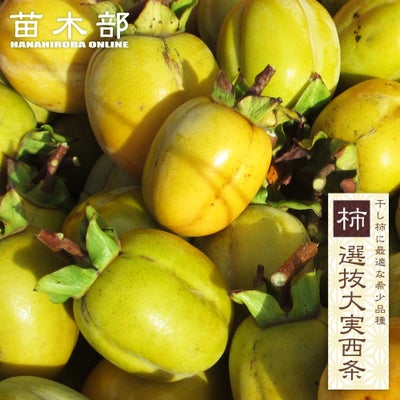 果実の側面に4条の溝ができるのが特徴の大実の渋柿です。種無しにもなりやすく、1果180~230g位で、肉質は粘質で柔軟緻密。多汁で甘味強く、食味は濃厚です。脱渋も簡単です。10月上~中旬収穫。