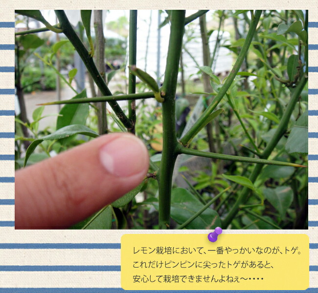 新品種です。トゲが小さく安心して育てやすいレモンです。小さいうちは多少とげがありますが、大きなトゲも生長するにつれてなくなります。
