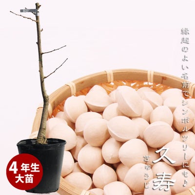 縁起の良い名前から、記念樹などにおすすめです。(『久治』とも書きます。)果実は中粒で果肉が薄く、早取りが可能です。貯蔵性はあまりよくないです。