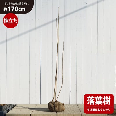 商品は根巻き大苗です。根鉢の部分も含め高さ約170cmです。根鉢の大きさは直径約30cmです。 2~5本程度の株立ちです。天然木ですので、立ち数は個体差があります。商品写真は入荷株の中から無作為に選んで撮影しており、現品もしくは同サイズの出荷になります。立ち数はお選びできません。