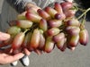 果皮は赤紫色で、果実の粒が細長い尖った形をしているのが特徴にの品種です。その美しい外観から中国の高級ホテルではステータスシンボルになっています。