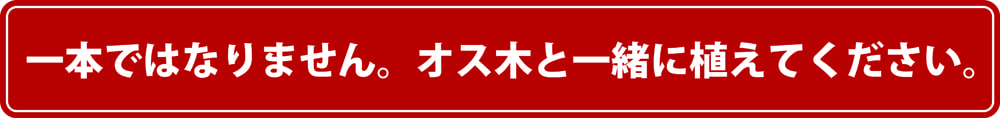 雄木が別ですので、必ず両方を近くに植えつけてください。特に苗が小さいうちは耐陰性はないので、雑草などに覆われないように注意してください。