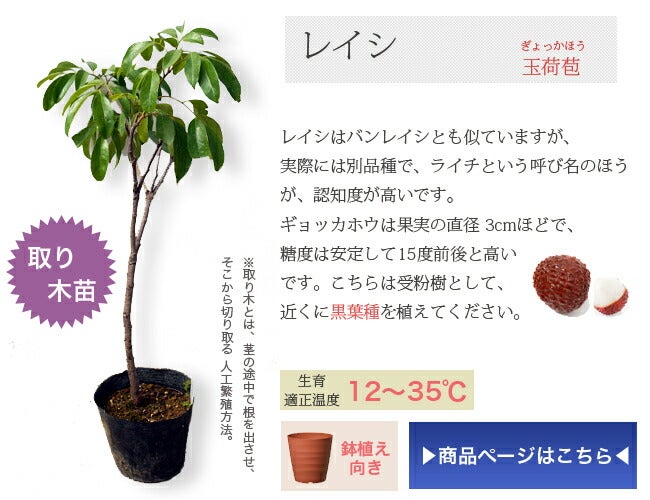 | 玉荷包 | 2〜4年 | 約30g | ライチの代表品種(15度) |