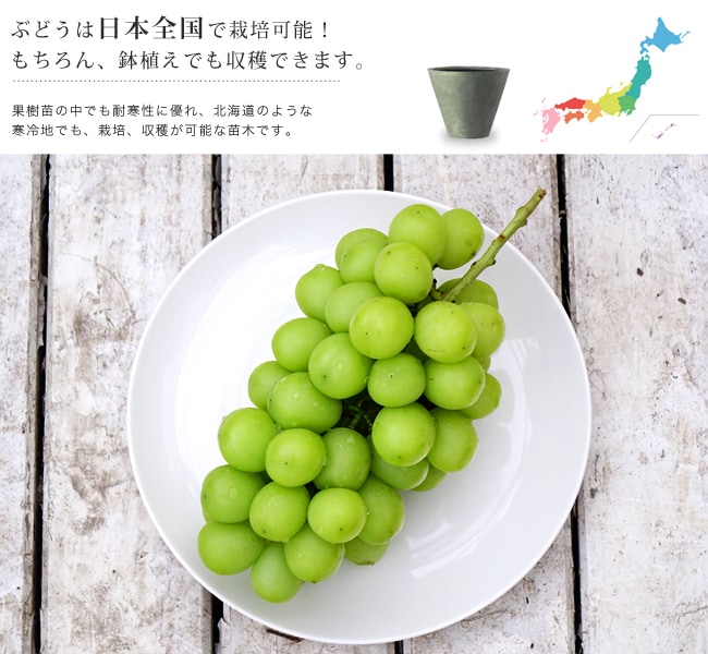 ぶどうは全般に暑さ寒さ、乾燥に強く、北海道から九州まで栽培できます。水はけが良く、通気性の良い土を好み、土質は選びません。