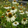 エキナセア アラスカは初夏~夏遅くまで白色の花を咲かせます。コーンの部分は緑っぽくなることもあります。一般的なエキナセアに比べ草丈が低く、扱いやすいです。切花としても人気のある品種です。