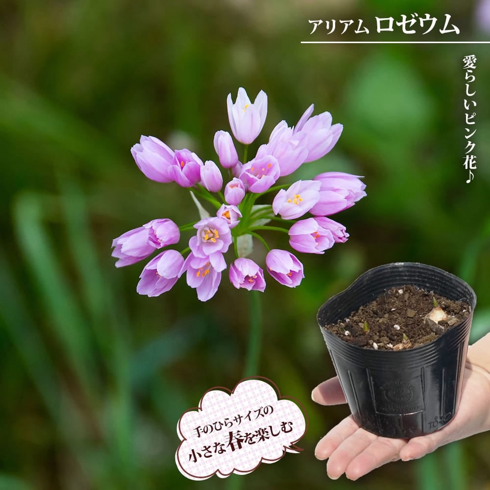 他の画像を見る 手のひらサイズの春を楽しむ。ピンク花の濃さはお楽しみ 【芽出し球根】 アリアム ロゼウム(3球/4号ポット) 価格 ¥ 798 税込 売り切れ 再入荷お知らせ お気に入りに登録する (0)