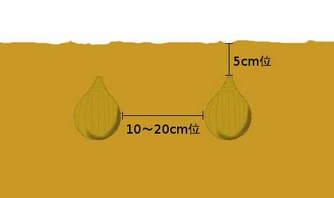 植え付け間隔は10~20cm位、深さは5cmくらいに植え付けます。
