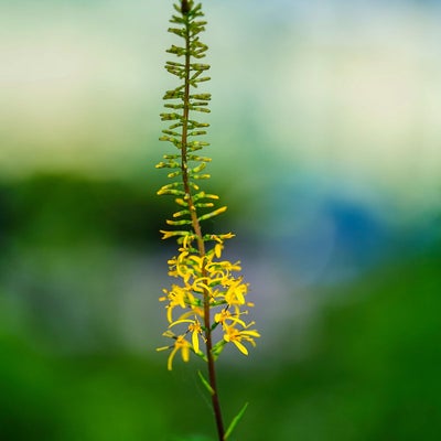 キク科の宿根草で和名「メタカラコウ」。プルツェワルスキーは鮮やかな黄色の花を穂のように咲かせます。