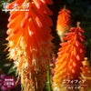 旧属名「トリトマ」の名前で親しまれている常緑の宿根草です。何本も伸びる花茎の先に大ぶりのブラシのような花を咲かせ、抜群の存在感があります。下向きに咲く筒状の花色が咲き進むにつれて変化する様子から「トーチリリー」とも呼ばれています。