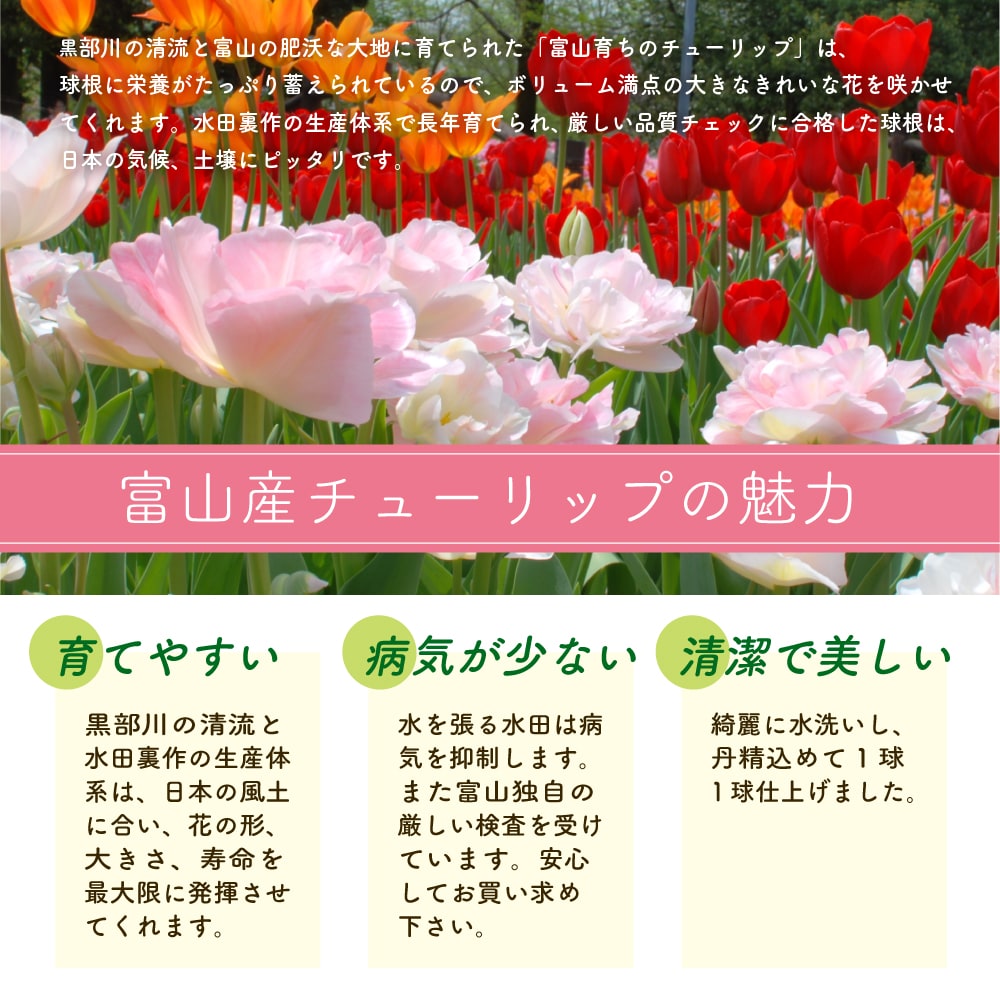 富山産チューリップ 3つのこだわり!作りやすい!病気に強い!美しい!