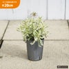 「メルロー」は、葉に深く切れ込みが入るラベンダーです。強健なガーデン用品種であるアラルディー種の斑入りタイプで、ふんわりとやわらかい草姿が魅力です。初夏に咲く優しい紫色の花は香りがとっても強く良い品種です。生育が早く数年育てるとこんもり茂ります。
