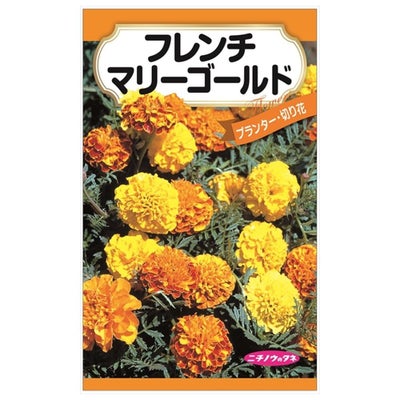 「フレンチマリーゴールド」は、パツラという品種もしくは、それを元に改良された園芸品種群。フランス王室の庭から作出されたことから「フレンチ」と名がついたそうです。草丈が比較的短く、小ぶりな花をつけるのが特徴です。