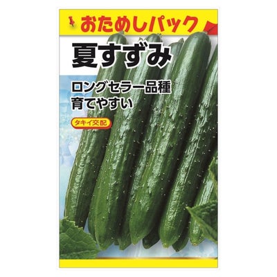 「夏すずみ」は、ベト病・うどん粉病に強い秋夏キュウリのロングセラー品種です。高温乾燥の時期でも栽培が安定し、収穫量の浪が少ないです。果皮は濃い緑色で照りがあり、サイズは21~22cmほど。親づるに雌花がつき割合は50~60%で各節1果成りが主体です。