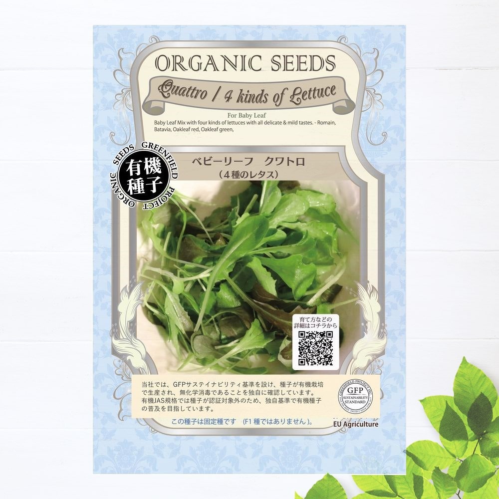 ロメイン・バタビア・オークリーフ赤・オークリーフ緑の4種で、生育の揃いが非常に良いです。葉の形や色が様々で見た目にも楽しいく、柔らかくて美味しいベビーリーフです。