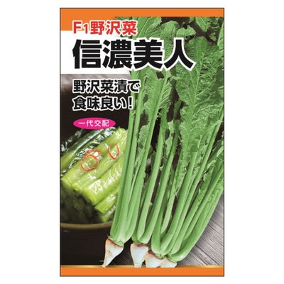 「信濃美人」は霜に当たっても葉が赤くなりにくい緑が美しい品種です。生育旺盛でそろいがよく育てやすい野沢菜です。「冬菜」とは冬に出回る菜類の総称です。白菜・京菜・唐菜・小松菜などがこれに該当しますが、当店では上記であげた以外のアブラナ科の葉菜野菜をまとめて冬菜としています。秋に種をまき冬に育て収穫が春までの冬菜は、病害虫になりにくいため初心者にもオススメです。
