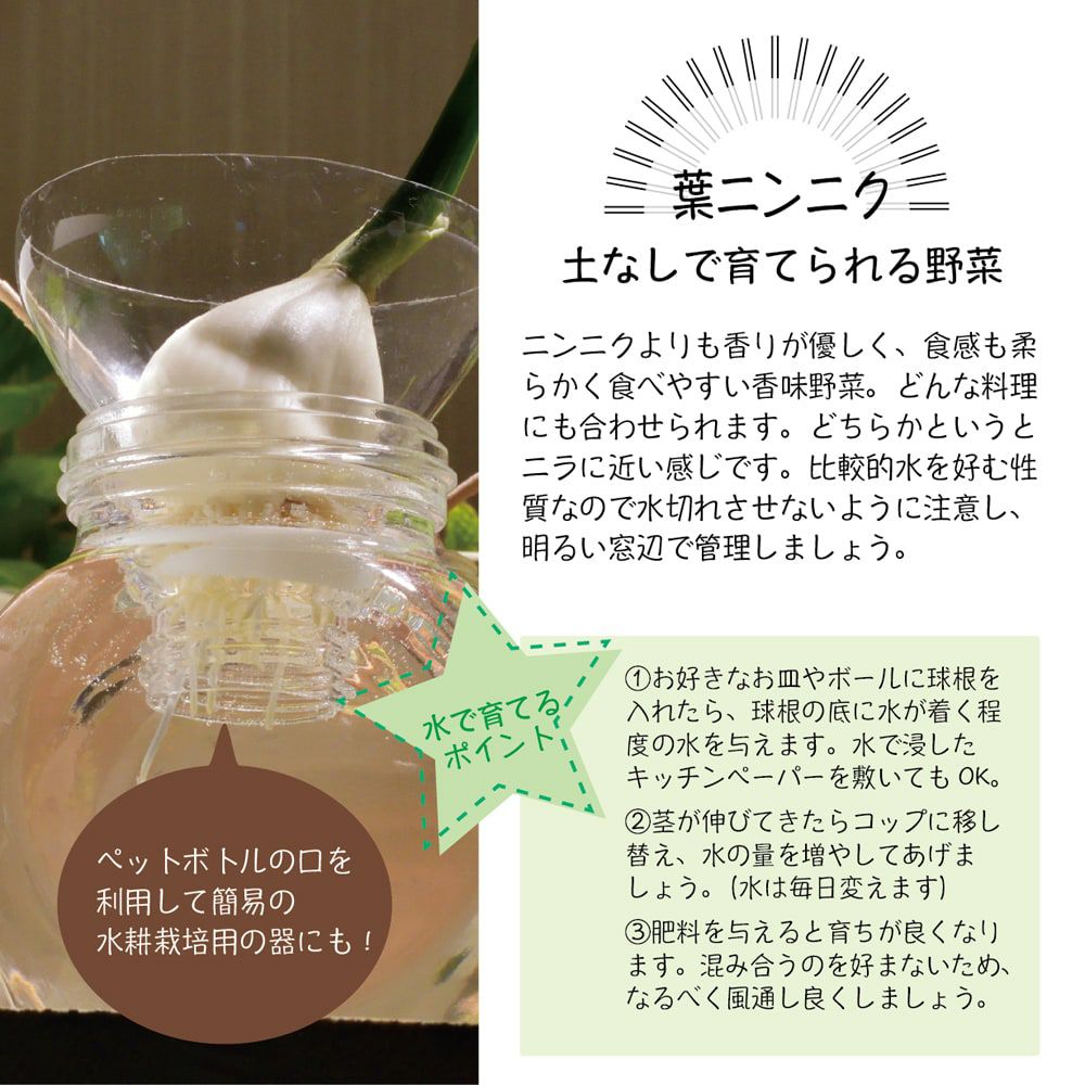 他の画像を見る 繰り替えし楽しめる!栄養満点のスタミナ食材 【にら】 球根 (奈良県産) 3株入り (植え付け時期7月~11月下旬) ¥ 1,098 税込 売り切れ 再入荷お知らせ お気に入りに登録する (0)