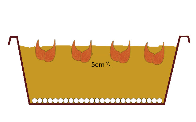 プランター・鉢植えで5cm位の間隔です。