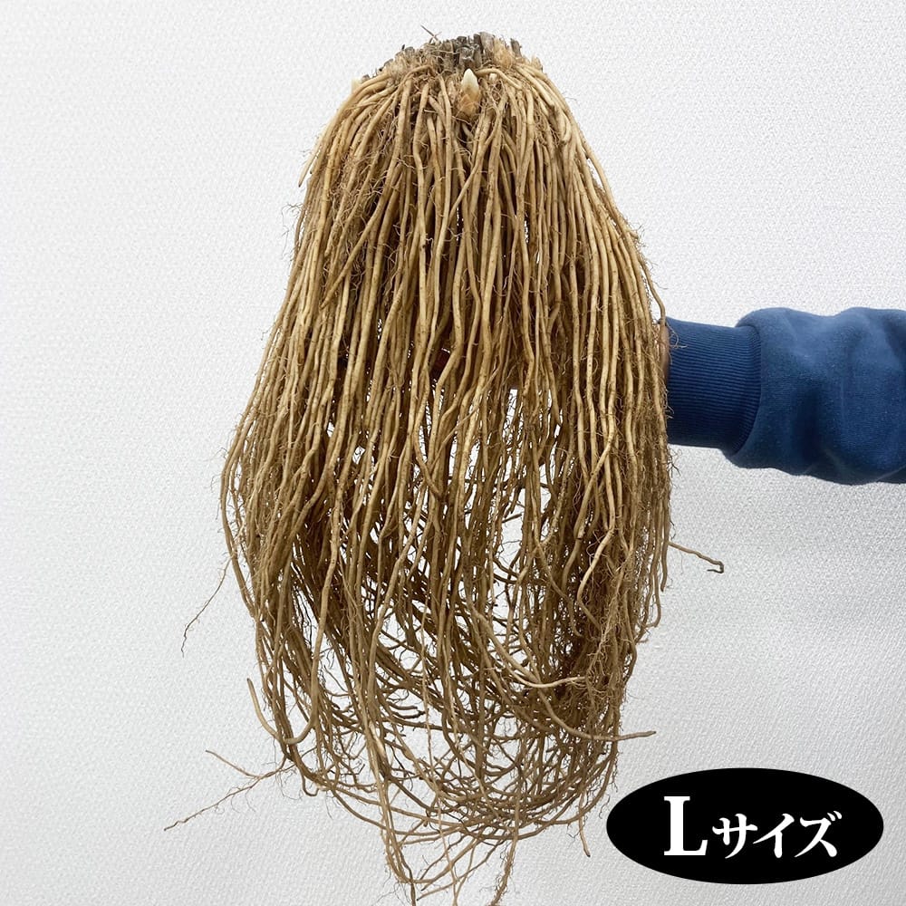 アスパラガス ウエルカムの特大株。まるでウィッグです。Lサイズだと1年目から収穫に期待できます。