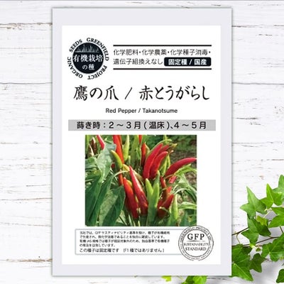 「鷹の爪」は細長タイプの赤トウガラシで、夏から秋にかけて6cmの実が収穫ができます。一般的なトウガラシが8~10cmなので少し小さめです。辛みが強く風味がよく、香辛料の代表食材。未熟果は青唐辛子としても楽しめます。唐辛子の原産地は中南米で、15世紀にコロンブスがアメリカからスペインに持ち帰ったのが始まりとされています。日本には、江戸時代から明治時代に入ってきました。とうがらしに含まれる、カプサイシンは体温上昇や発汗、脂肪の燃焼などの効果があるとされています。
