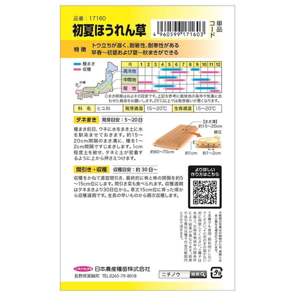 他の画像を見る ベト病抵抗性をもつ。春秋両用。 ほうれん草 【春秋2号ほうれん草】 種・小袋 (25ml) F1(一代交配種) 価格 ¥ 338 税込 7日以内の入荷予定(お取り寄せ販売) お気に入りに登録する (0)