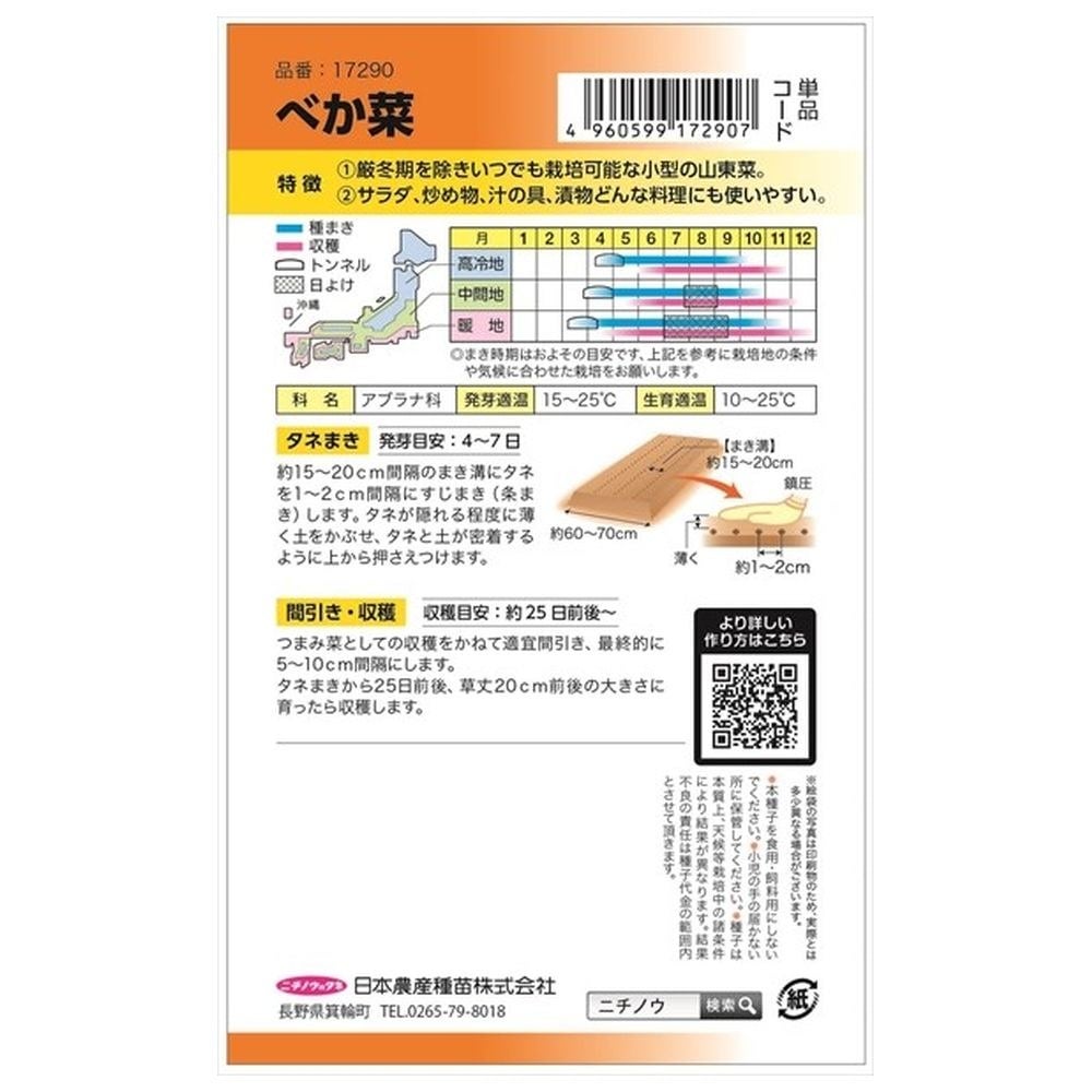 他の画像を見る 病害に強く作り易い。品質の良い早生種 白菜 【タキイ交配 耐病六十日白菜】 種・小袋 (1.5ml) F1(一代交配種) 価格 ¥ 798 税込 7日以内の入荷予定(お取り寄せ販売) お気に入りに登録する (0)