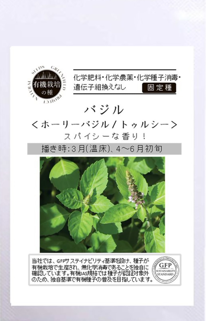 ホーリーバジルは、スイートバジルより香りが強く、スパイシーな風味が特徴的です。加熱しても風味が飛びにくく、お茶から炒め物まで幅広く用いることのできる使い勝手のよいハーブです。