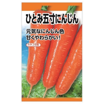 「ひとみ五寸にんじん」は、形と色の良い肉質に優れた甘みが強い美味しい人参。夏まき冬どりに適しており、低温下での肥大も優れ、遅まきにして越冬栽培もできます。肩部のひび割れや青首の発生が少なく、半立性の草姿は葉ボケになりにくく黒葉枯れ病にも強いです。大変作りやすい品種なので家庭菜園にもおすすめします。