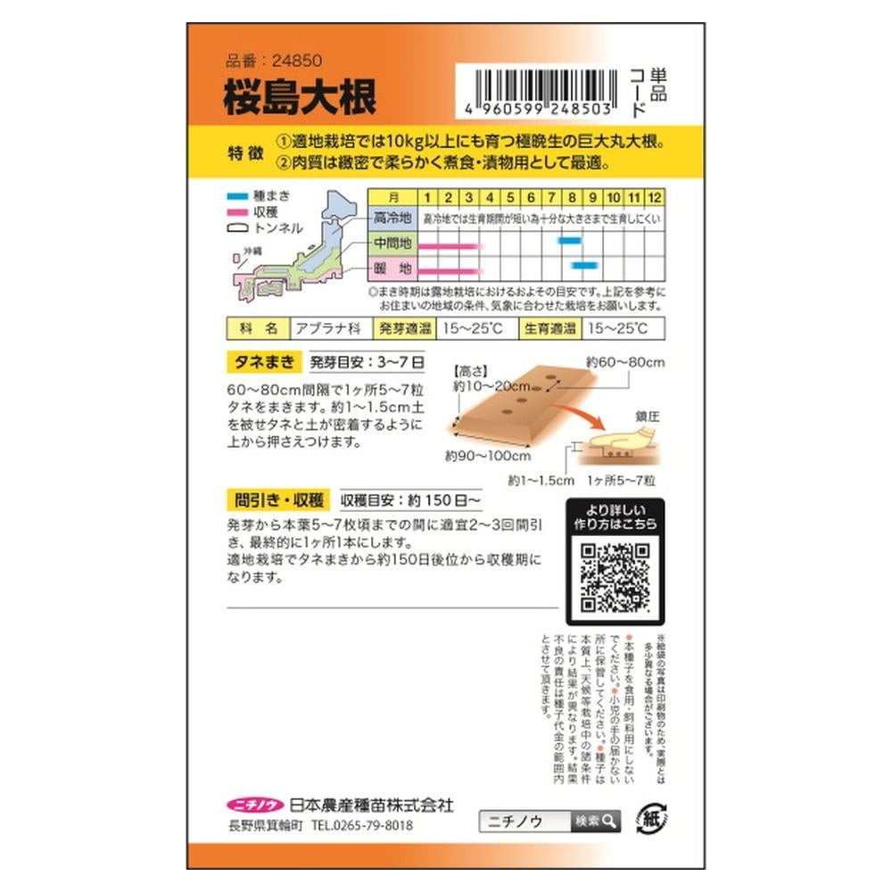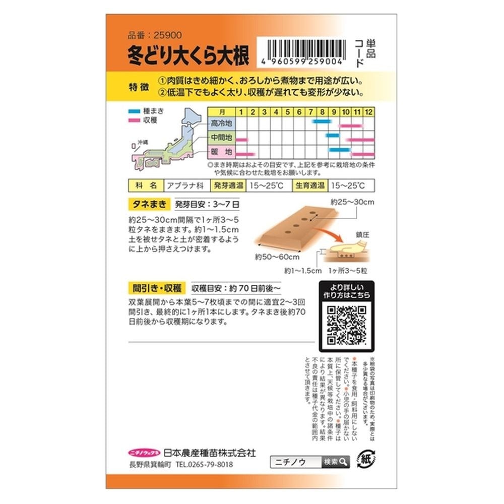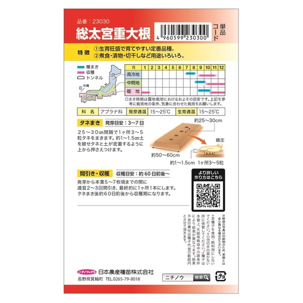 他の画像を見る ス入りおそく、肉質最上! 大根 【交配耐病秋まき総太大根(お徳用パック)】 種・小袋 (18ml) F1(一代交配種) 価格 ¥ 898 税込 売り切れ 再入荷お知らせ お気に入りに登録する (0)