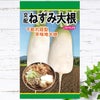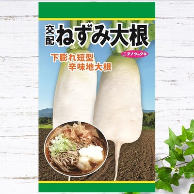 「交配ねずみ大根」は長さがだいたい20cm 重さ300~500gの小型ダイコンです。極端な尻太の特徴的な形をしています。食感も独特ながら美味しい新しいタイプの大根です。沢庵漬けをはじめ、粕漬け、浅漬けなど幅広い用途で利用できます。秋播き専用品種です。ダイコンは、根も葉も食べられる、日本でも品種や調理方法が豊富な野菜です。日本には弥生時代には伝わったものの、一般に栽培されるようになったのは江戸時代からとされています。根は大根おろしやサラダ、煮ても美味しく、漬物にもピッタリ。葉は炒め物やよごし、漬物などでいただきます。