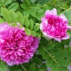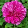 豪華な紅紫色の八重咲きを咲かせるバラの原種。耐病性強い。
