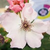花つきの良い房咲き品種。サーモンピンクの一重盃状咲き。花弁の内側はソフトピンクで外側はローズピンク。紅紫の雄しべが美しいクレマチスにも似た花形。バラらしくない一重咲きです。シンプルな美しさがあります。花つきが良く大輪の房咲き多花です。スパイシーなツンとする香りです。店長のお気に入りの品種の一つです。