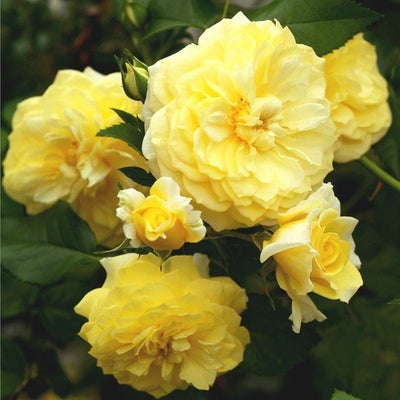 従来の黄色のバラに比べ、耐病性に優れて、濃緑色の照り葉が、花色を引き立てます。黒星病に強い。うどん粉病に強い。強いベーサルシュートはあまり出ないので古い枝を大事にします。樹形はドーム状に育ちます。
