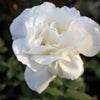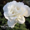 マウントシャスタ。おおらかにふっくらとした花姿。花弁の質がとても良く、優雅な雰囲気です。やや遅咲き品種です。雨にあたっても花傷みが少ないです。枝は太く逞しいですが、とげは少なく扱いやすい。株元からのシュートが出にくいので、冬に深めに切り戻すと良いです。うどんこ病に強い。黒星病は普通。