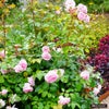 シュラブローズは冬に強い剪定をして木立ちにしてもいいし、トレリスとかオベリスクに誘引しても楽しめます。どっちかといえば、トレリスやオベリスクに誘引して大きくした方が、たくさん花が咲くボリュームがある鉢植えで楽しめます。ベランダで楽しめるつるばらと言う感じです。