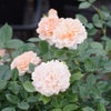 淡い杏色の花は開くにつれクリームピンクに変化します。ロゼット咲きの花があふれるように咲き続け、秋の花付きも非常に良く、コンパクトな樹形なので鉢植や庭の花壇の縁どりに向きます。