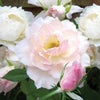 ピンクの蕾から白いバラへ・・・。不思議な魅力を秘めています。大輪のカップ咲き。限りなく白に近いピンクの花がやさしく香ります。生命力が強く、育てやすいバラとカタログには記載がありますが、実際は病気がつきやすいです。うどん粉病がつきやすいです。黒星病もつきます。花もちは良いです。