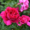 ルージュピンクの中大輪ロゼット咲き。四季咲き性が強く、春から秋まで繰り返しよく咲くバラ。中型のシュラブ樹形で、刺の少ないしなやかな枝がよく茂ります。うどん粉病に強く、黒星病は普通。鉢植え、花壇のアクセントになるバラです。