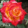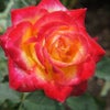 濃黄に赤の覆輪咲き・大輪咲き(11cm位)・半剣弁高芯咲き (花弁数 17~25枚