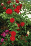 混じりけのない赤の花色は数ある赤バラの中でも比類ない美しさです。濃緑色の照り葉が赤の美しさをいっそう引き立てます。大輪系のヘルアツスの枝代わりで、ヘルアツスと同じく、花保ちがとても良いです。 トゲが少ないので、とても扱いやすく、アーチに仕立てると美しい景観を楽しめます。