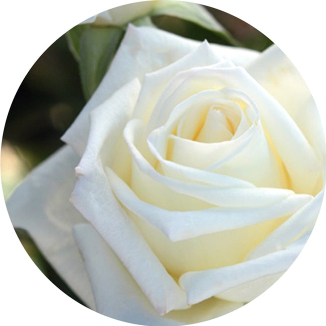 清らかに澄み切った白の大輪花は、フランス革命の時代を情熱的に生きた男装の麗人オスカル・フランソワ・ド・ジャルジェの面影そのものです。すらりとした茎に凛々しく咲く剣弁高芯の花は、正統派のバラのオーラを放ちます。また、見た目だけでなく、芳香まで備えています。花首の長さ、葉、茎のバランスが良く、整った樹形に育ちます。花もちも良い。