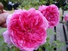濃いローズ色の整った大輪ロゼット咲きで、満開になると丸弁のゆるいカップ咲きになります。花弁数が多く、花には良い香りがあります。