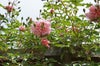 明るいピンクの美しいロゼット咲きです。5輪くらいずつ房咲きになり、枝が花に覆われたようになります。