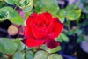 深みのある燃えるような赤いバラで、咲き進んでも色褪せしません。整った剣弁高芯咲きで、ボリュームがある花は1輪咲き、もしくは房先になります。