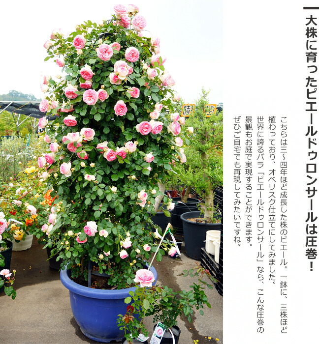 LCは仕立て方によってつるバラの系統なのでフェンスに添わすことが可能です。また、短く切り戻しブッシュ樹形にしても楽しめます。四季咲きの傾向が強い品種も多いため、秋の開花を楽しみたいのでしたら、つる仕立てにする際も、木立仕立てのような切り戻し剪定を行います。