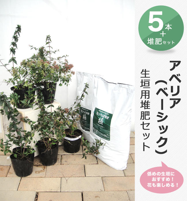アベリア(ベーシック)生垣向け 5本+堆肥2袋セット