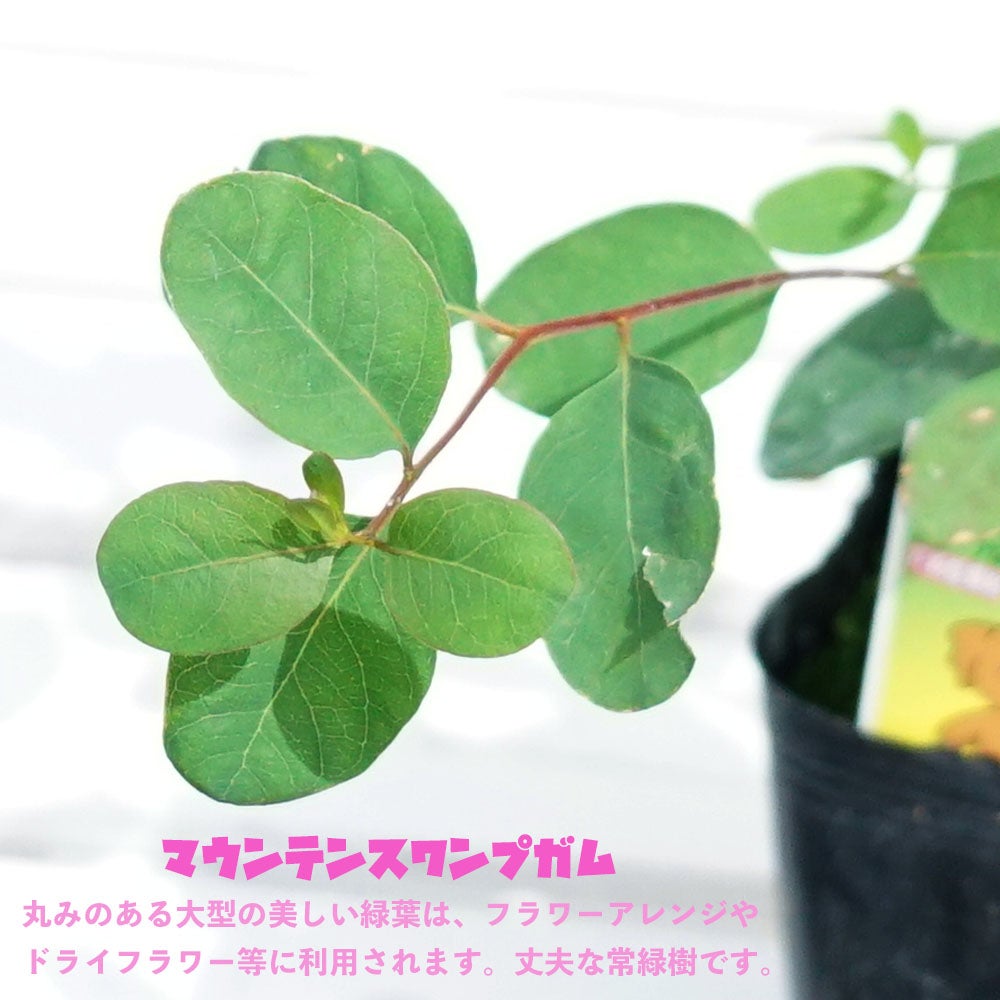 葉はハーブとしても使える切花でおなじみのユーカリです。別名サイダーガム。
