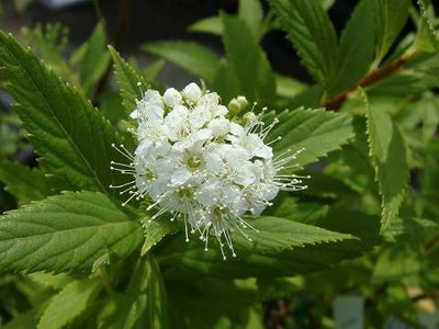 白花シモツケは、古くから庭木に使われてきました。樹高もそれほど高くならないので、鉢植えや庭植えでも楽しめます。細い枝が分枝し、その先端に小さな白い花を散房状に咲かせます。庭木だけでなく切り花にも適しています。