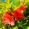 直径約4cmくらいの赤~サーモンピンク花。
