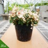 ハツユキカズラは、テイカカズラの斑入り品種です。つる性の草のように見えますが分類上は常緑つる性低木になります。成長が緩やかでコンパクトにまとまるので、寄植えやグランドカバーなど、何にご使用いただいても扱いやすい植物です。