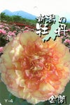 オレンジ色がかる黄色い花で、日をあびるとその名の通り黄金のような色合いになる黄色の牡丹。フランス種の千重の盛り上り咲きで大輪品種です。